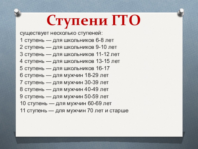 Нормы ГТО будут сдаваться в 11 возрастных группах, начиная с 6-8 летнего возраста и заканчивая группой старше 70 лет.