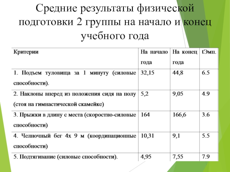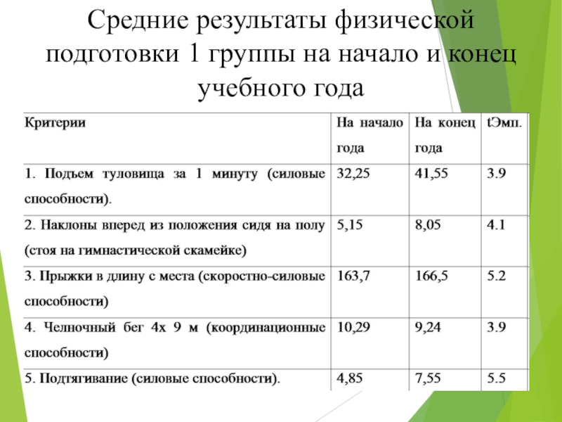1.Провести тестирование уровня физической подготовки учеников в начале и в конце учебного года.