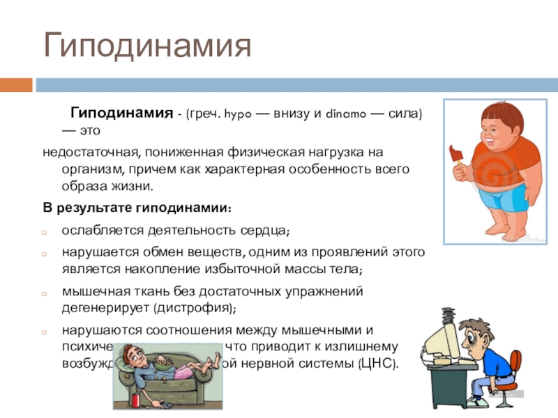 недостаточная, пониженная физическая нагрузка на организм, причем как характерная особенность всего образа жизни.