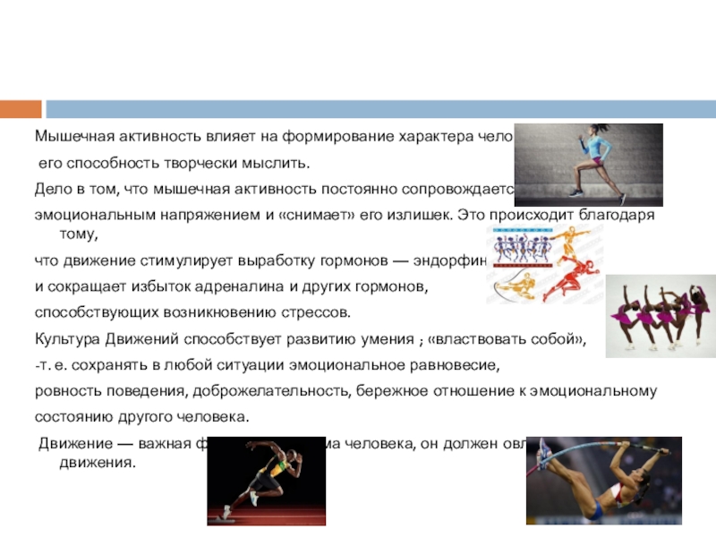 Слайд 5Мышечная активность влияет на формирование характера человека,