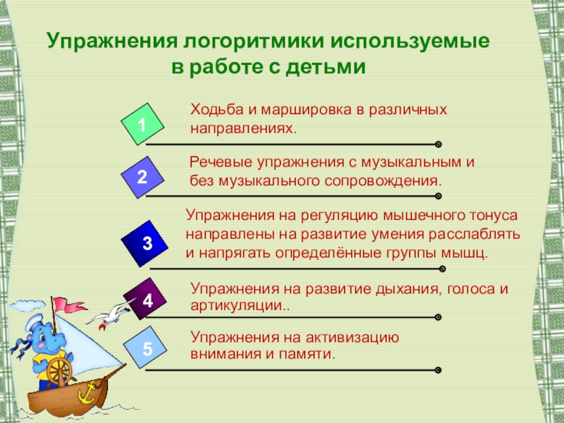 Речевые упражнения с музыкальным и без музыкального сопровождения.