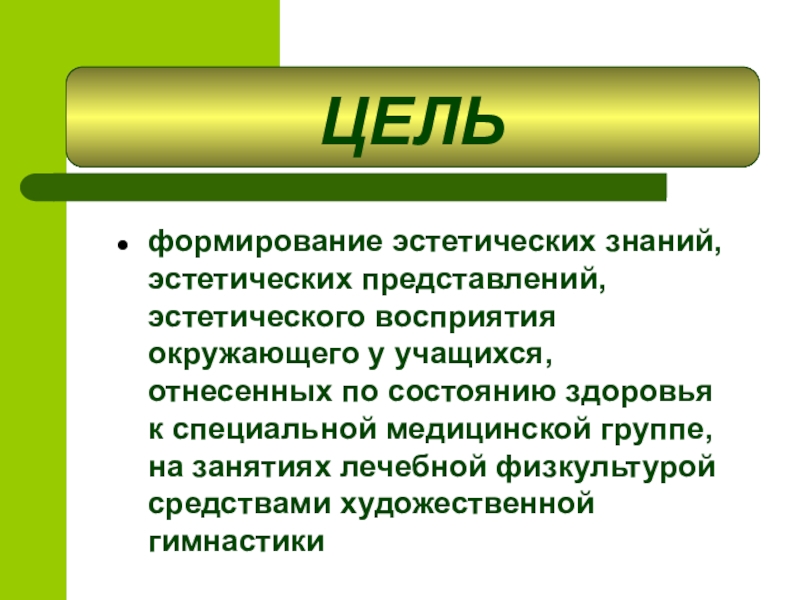 Слайд 1ЭСТЕТИЧЕСКОЕ ВОСПИТАНИЕ УЧАЩИХСЯ, ОТНЕСЕННЫХ К СПЕЦИАЛЬНОЙ МЕДИЦИНСКОЙ ГРУППЕ, НА ЗАНЯТИЯХ ЛФК