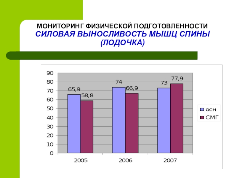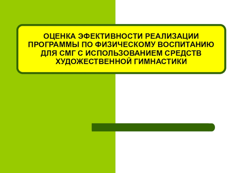 Слайд 24ОЦЕНКА ЭФЕКТИВНОСТИ РЕАЛИЗАЦИИ ПРОГРАММЫ ПО ФИЗИЧЕСКОМУ ВОСПИТАНИЮ ДЛЯ СМГ С ИСПОЛЬЗОВАНИЕМ
