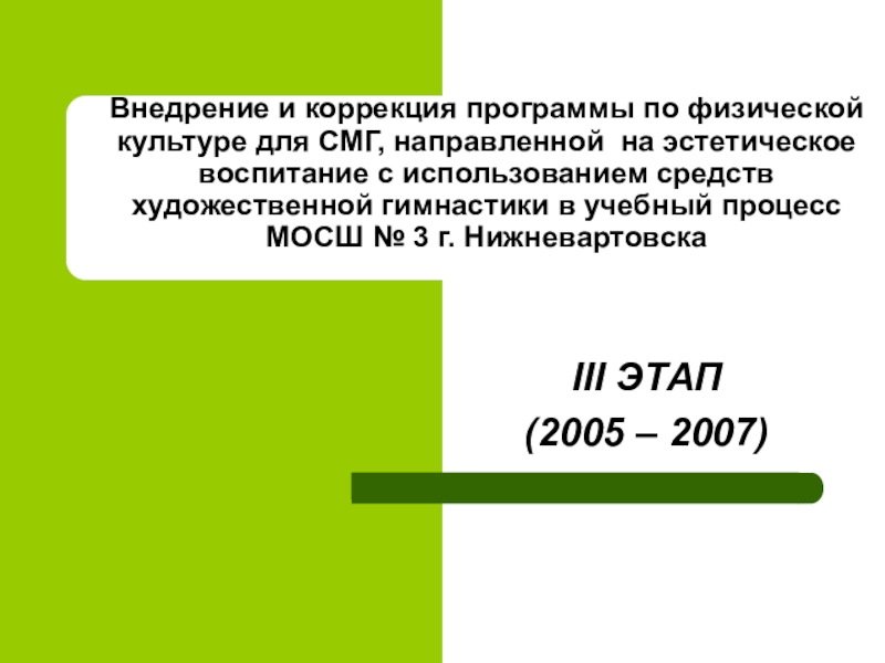 Слайд 11Внедрение и коррекция программы по физической культуре для СМГ, направленной на