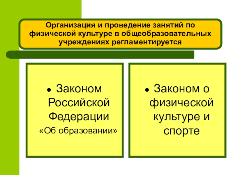 Слайд 13Организация и проведение занятий по физической культуре в общеобразовательных учреждениях регламентируется