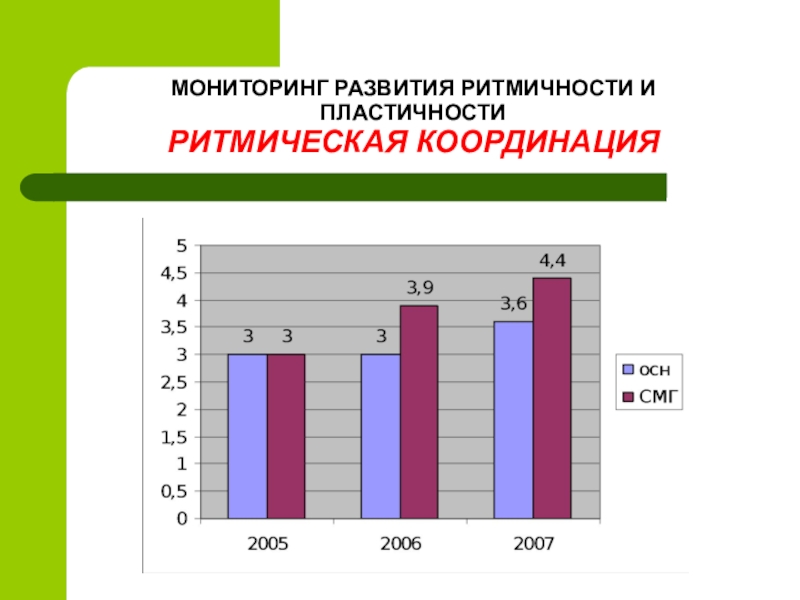 Слайд 29МОНИТОРИНГ РАЗВИТИЯ РИТМИЧНОСТИ И ПЛАСТИЧНОСТИ
