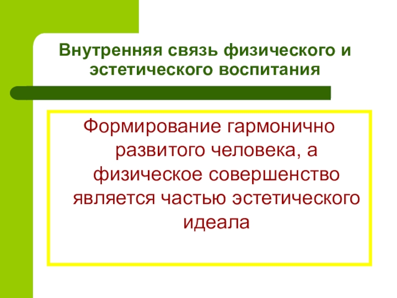 Слайд 2Внутренняя связь физического и эстетического воспитания