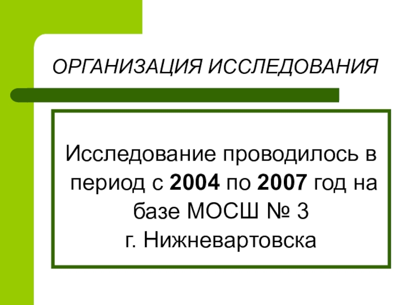 Слайд 8ОРГАНИЗАЦИЯ ИССЛЕДОВАНИЯ