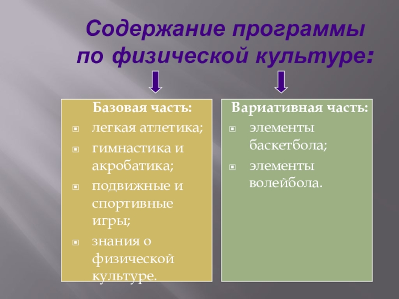 Слайд 9Содержание программы по физической культуре: