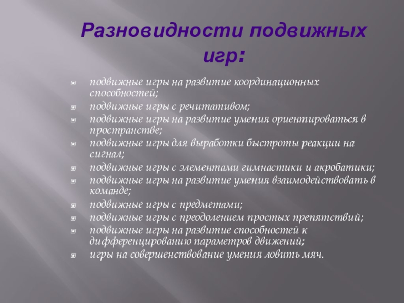 Слайд 16Разновидности подвижных игр: