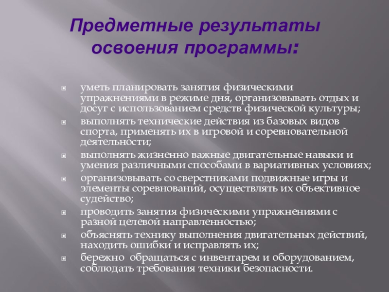 Слайд 6Предметные результаты освоения программы: