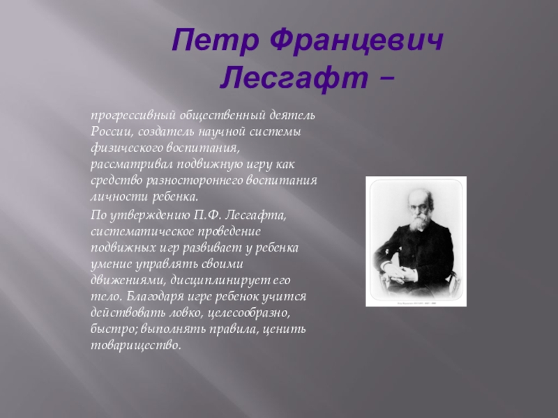 Слайд 15Петр Францевич Лесгафт –