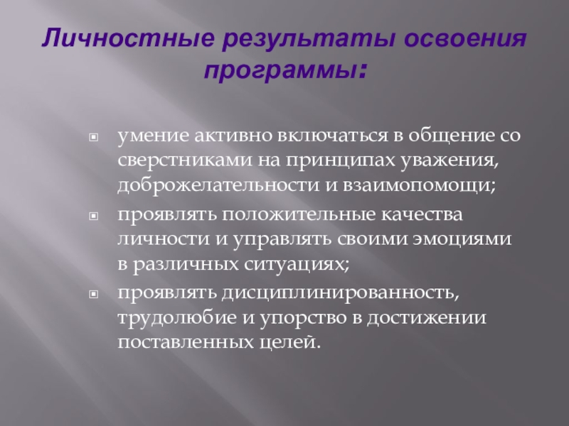 Слайд 8Личностные результаты освоения программы: