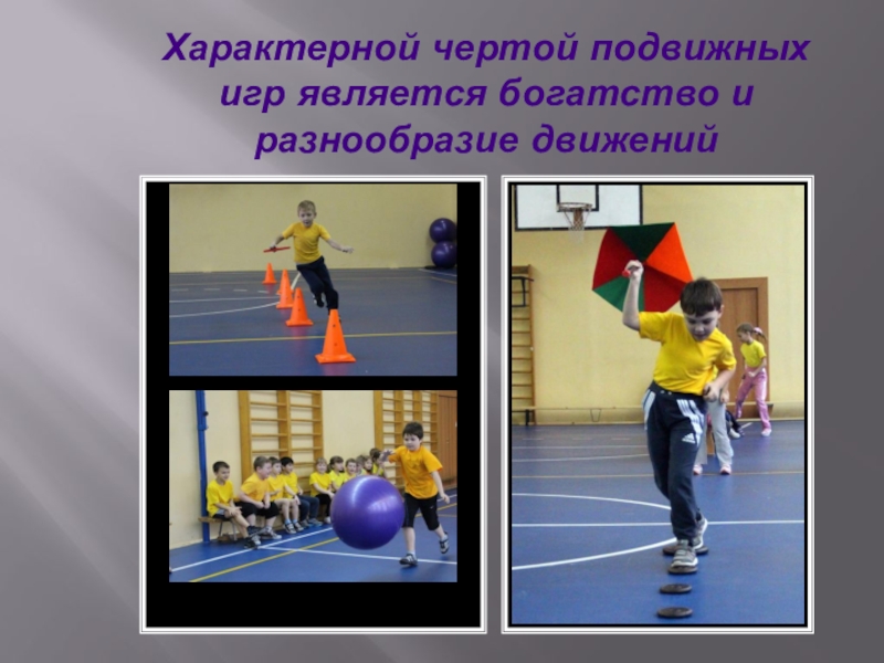 Слайд 17Характерной чертой подвижных игр является богатство и разнообразие движений