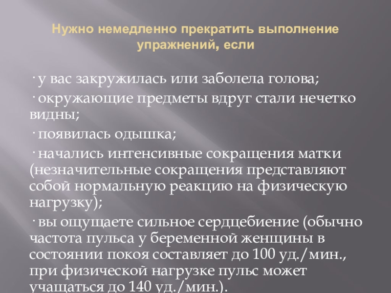Слайд 9Нужно немедленно прекратить выполнение упражнений, если