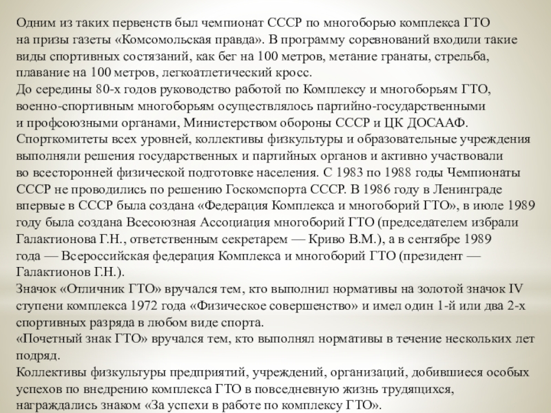 Слайд 47Одним из таких первенств был чемпионат СССР по многоборью комплекса ГТО на призы газеты