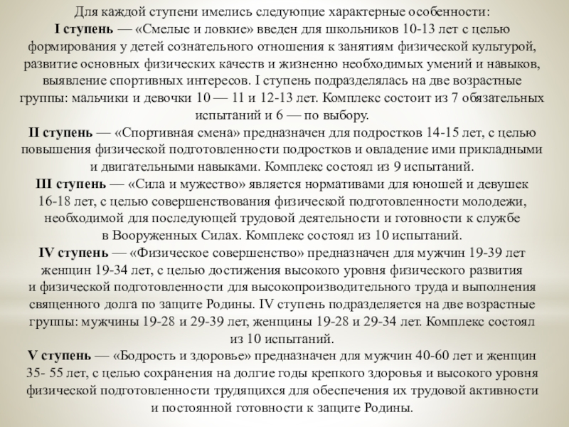 Слайд 41Для каждой ступени имелись следующие характерные особенности: