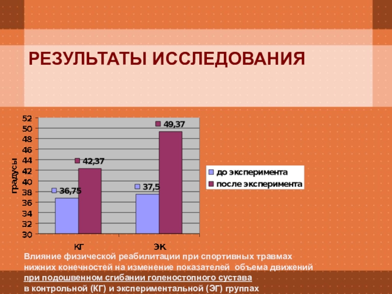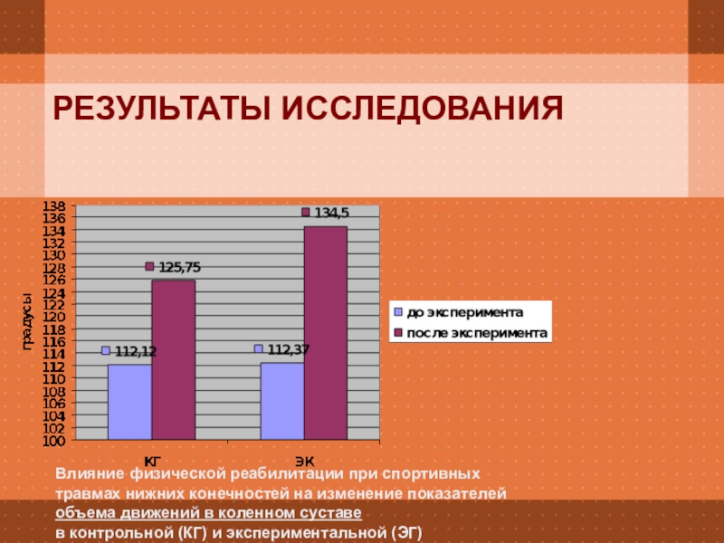 результаты гониометрии явно показывают, что объемы движения вернулись в норму: 134,5 ± 1,19 и 49,37 ± 0,74