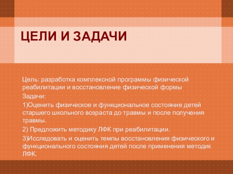 Цель: разработка комплексной программы физической реабилитации и восстановление физической