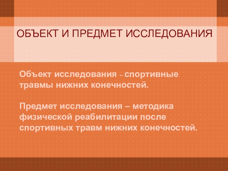 ОБЪЕКТ И ПРЕДМЕТ ИССЛЕДОВАНИЯ