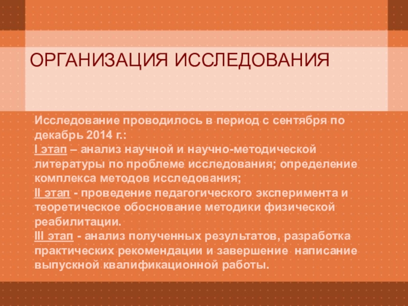 ОРГАНИЗАЦИЯ ИССЛЕДОВАНИЯ