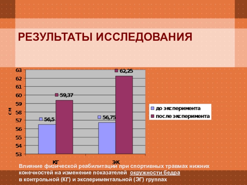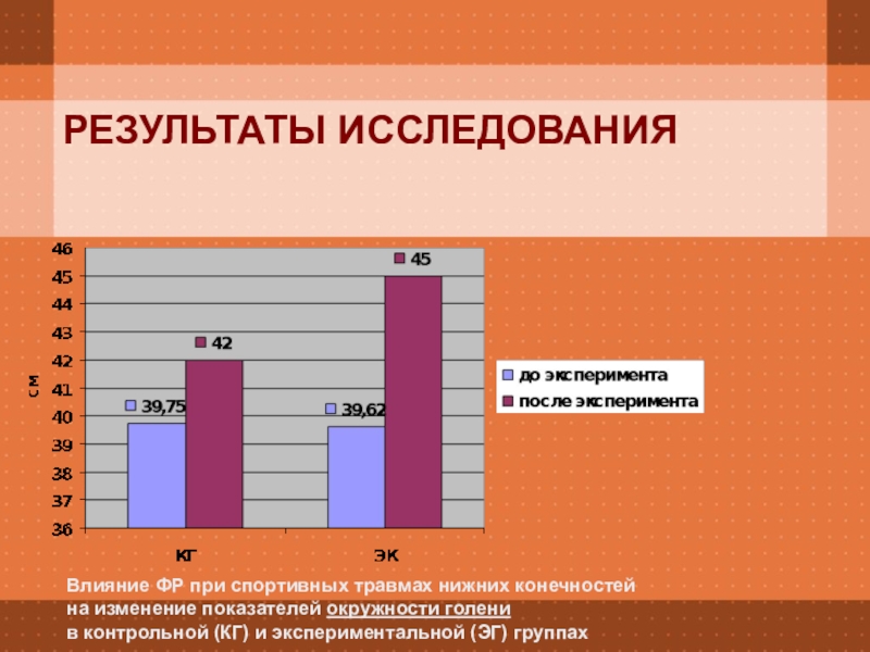 - улучшение показателей длин окружности голени и бедра в экспериментальной группе на 39 % (р < 0,05) по сравнению с контрольной.