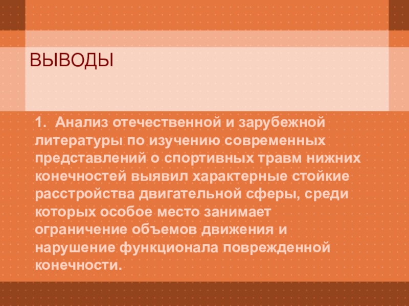 травм нижних конечностей выявил характерные стойкие расстройства двигательной сферы, среди которых особое место занимает ограничение объемов движения и нарушение функционала поврежденной конечности.