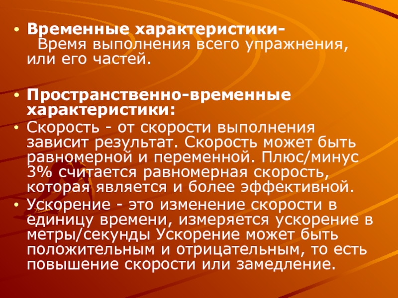 от скорости выполнения зависит результат. Скорость может быть равномерной и переменной. Плюс/минус 3% считается равномерная скорость, которая является и более эффективной.