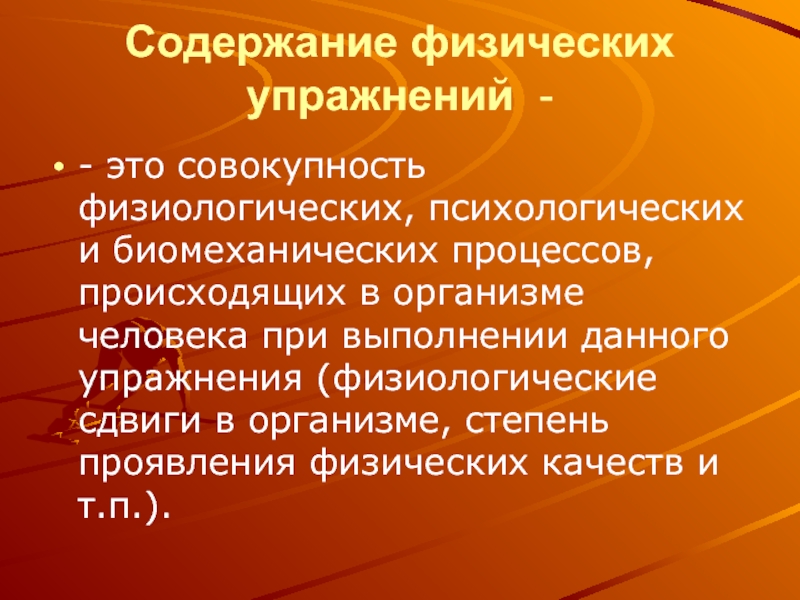 процессов, происходящих в организме человека при выполнении данного упражнения (физиологические сдвиги в организме, степень проявления физических качеств и т.п.).