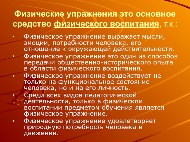 Физическое упражнение это один из способов передачи общественно-исторического опыта в области физического воспитания.