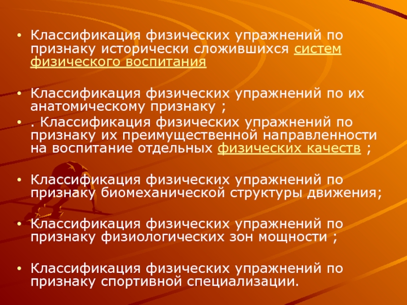 . Классификация физических упражнений по признаку их преимущественной направленности на воспитание отдельных физических качеств ;
