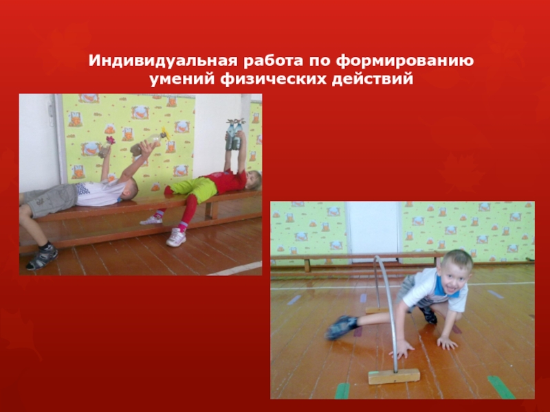 Слайд 5Индивидуальная работа по формированию умений физических действий