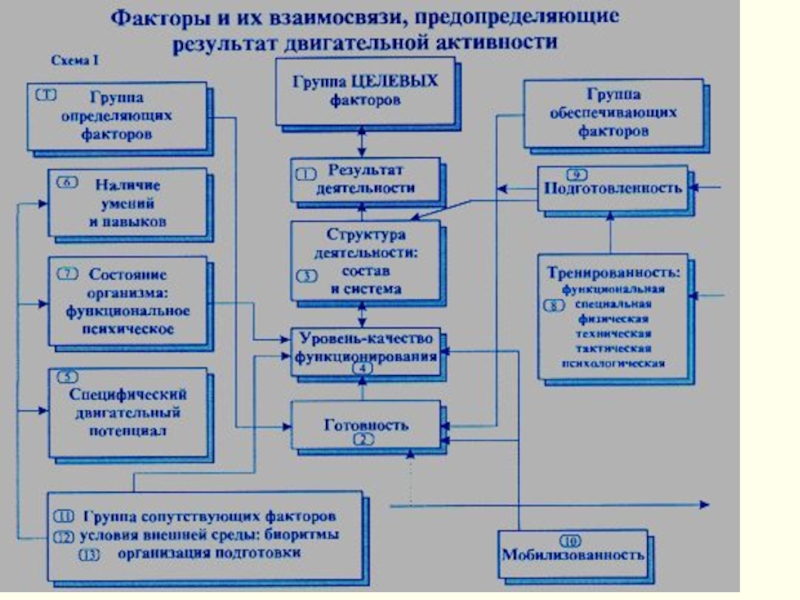 На схеме 1, отражающей группы факторов и их взаимосвязи, предопределяющие достижение запланированного результата, в качестве