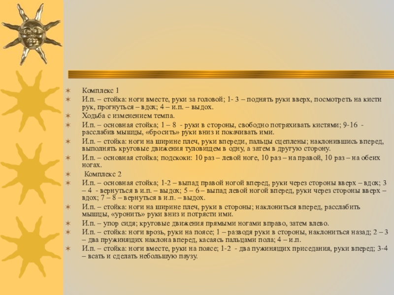 Слайд 26Комплексы гигиенических упражнений до начала занятий