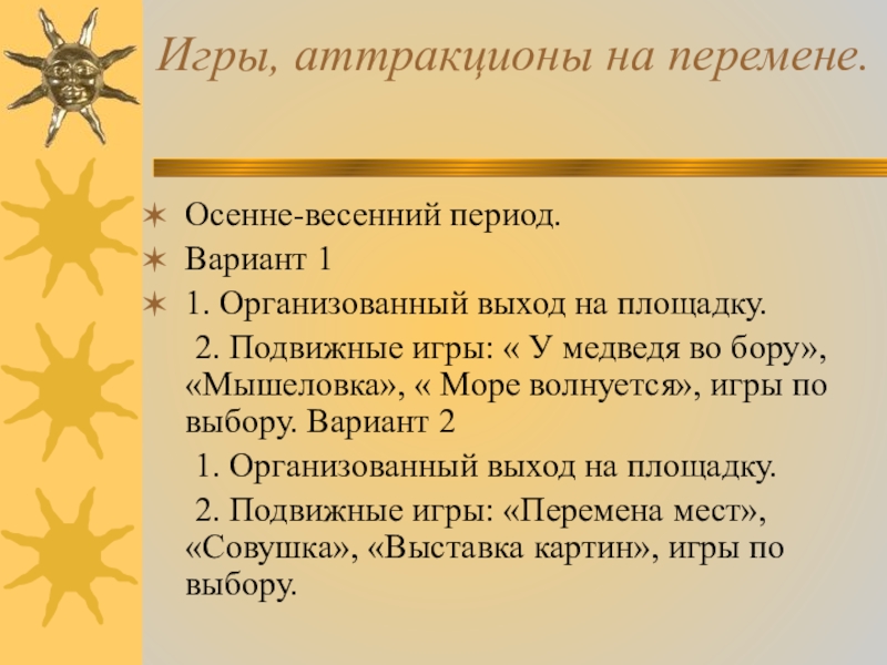 2. Подвижные игры: « У медведя во бору», «Мышеловка», « Море волнуется», игры по выбору. Вариант 2