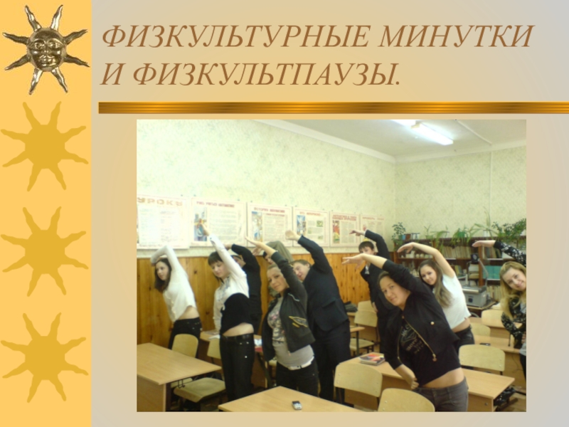 Слайд 17ФИЗКУЛЬТУРНЫЕ МИНУТКИ И ФИЗКУЛЬТПАУЗЫ.