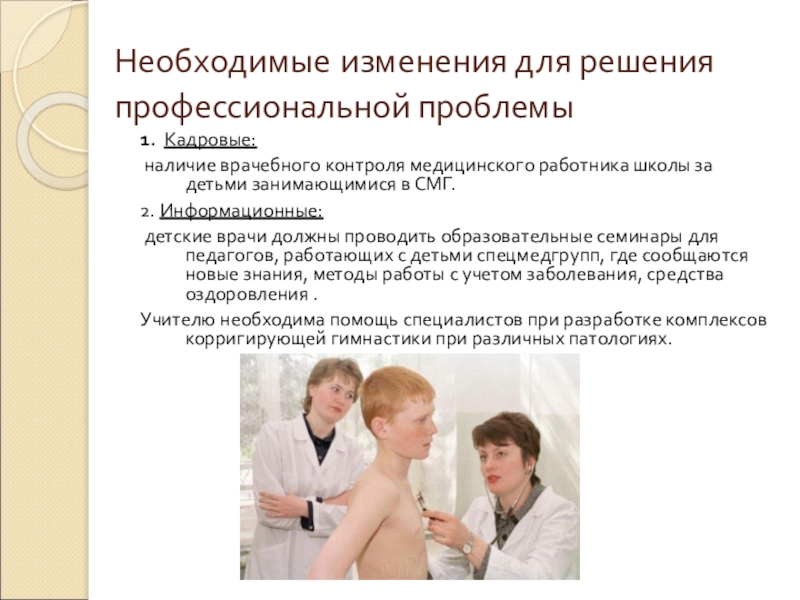 Слайд 13Необходимые изменения для решения профессиональной проблемы