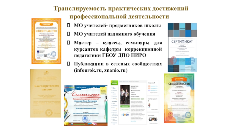 Публикации в сетевых сообществах (infourok.ru, znanio.ru)