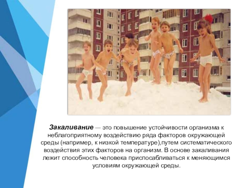 Нагрузка во время занятий физической культурой и закаливающих процедур должна быть постепенной с учетом индивидуальных особенностей;