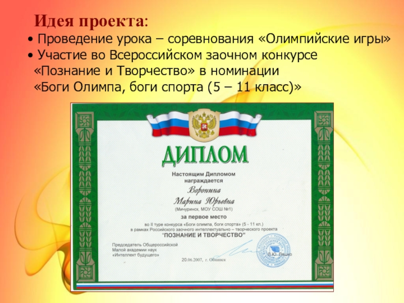 «Боги Олимпа, боги спорта (5 – 11 класс)»