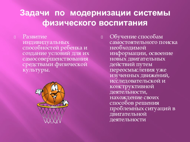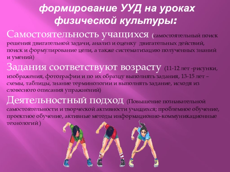 Обучение способам самостоятельного поиска необходимой информации, освоение новых двигательных действий путем переосмысления уже изученных движений, исследовательской и конструктивной деятельности, нахождение своих способов решения проблемных ситуаций в двигательной деятельности