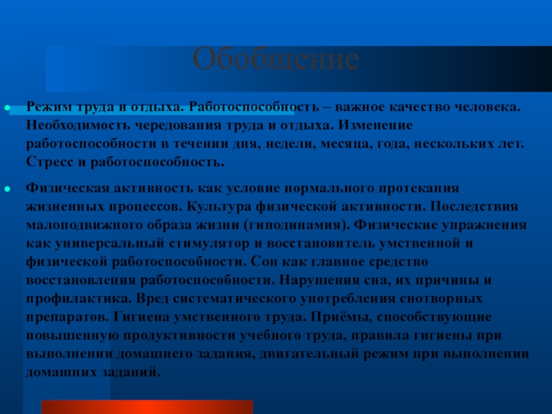 Режим труда и отдыха. Работоспособность – важное качество человека. Необходимость чередования