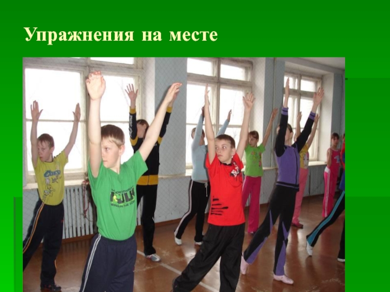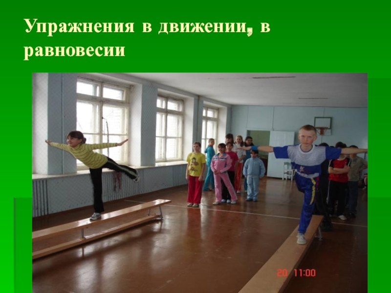 Слайд 19Упражнения в движении, в равновесии