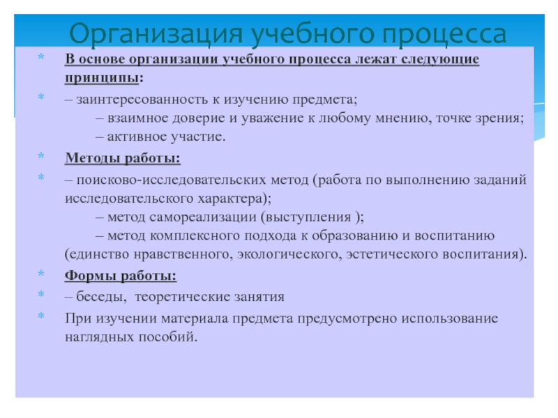 Слайд 6В основе организации учебного процесса лежат следующие принципы: