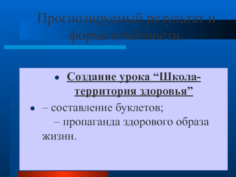 Слайд 7Прогнозируемый результат и форма отчётности.
