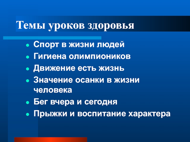 Слайд 26Темы уроков здоровья