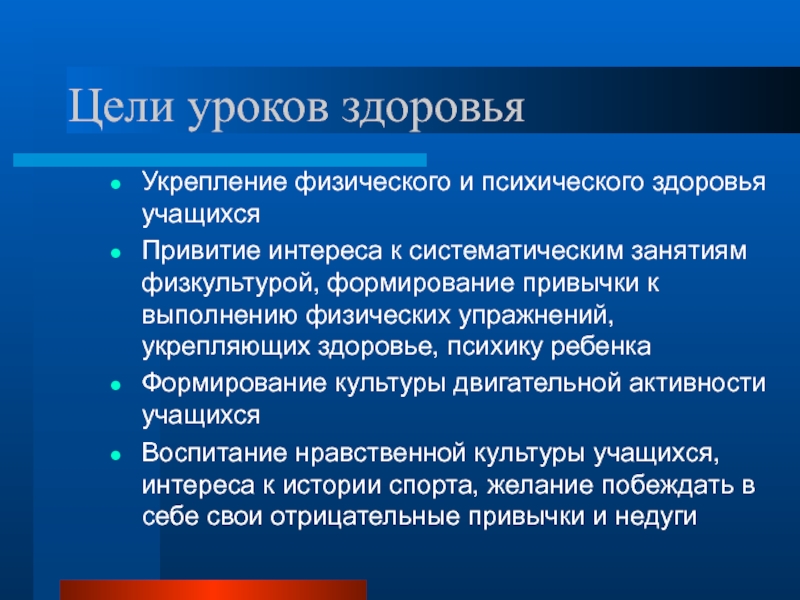 Слайд 25Цели уроков здоровья