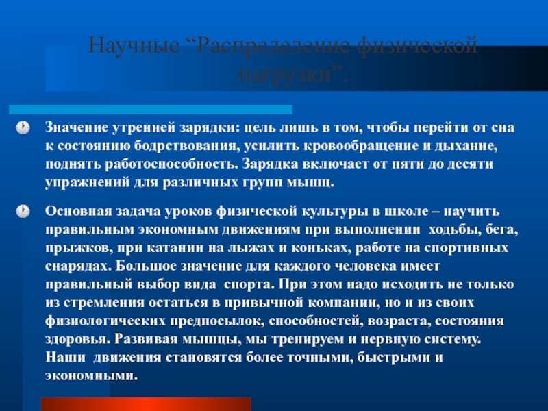 Слайд 11Научные “Распределение физической нагрузки”.