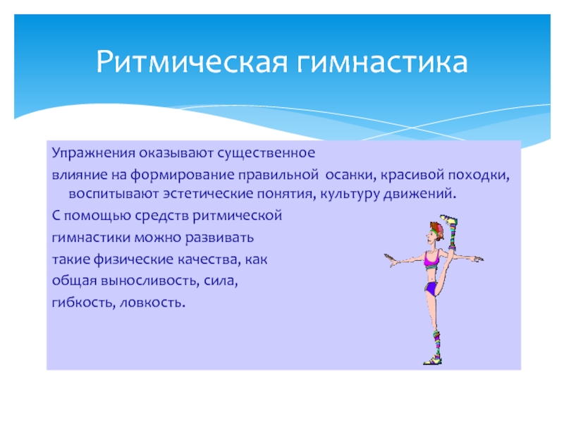 влияние на формирование правильной осанки, красивой походки, воспитывают эстетические