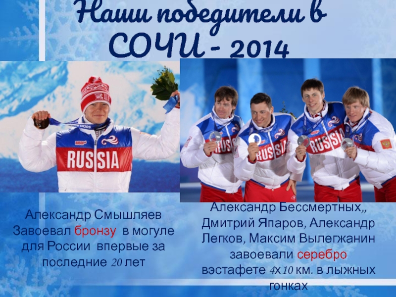Александр Бессмертных,, Дмитрий Япаров, Александр Легков, Максим Вылегжанин завоевали серебро